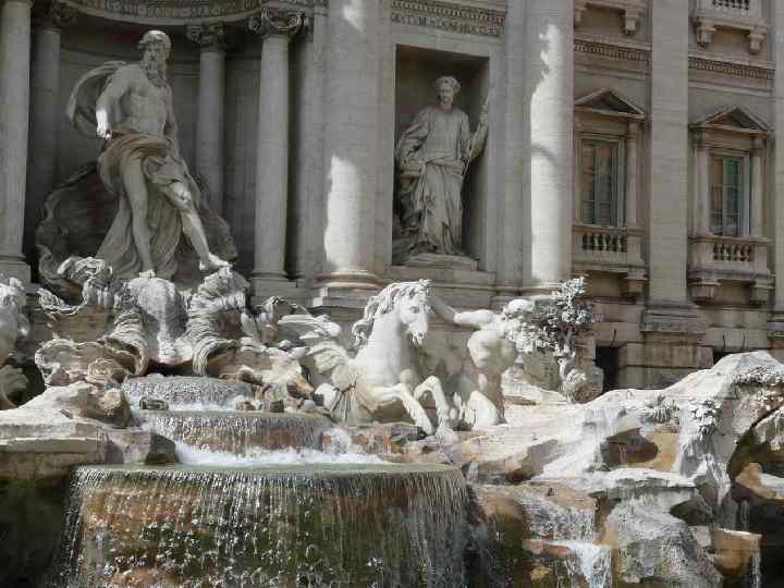 • Самый большой фонтан Рима (49 м шириной и 26 м высотой). • Вода поступает из источника, расположенного в 13 км от Рима, по водопроводу, который действует с I в. до н. э. • На заднем плане - Палаццо Поли (архитектор Луиджи Ванвителли).