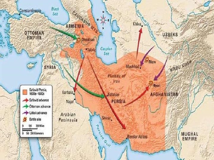 The Safavid Empire (Early 1500’s – 1722) • Controlled much of the old Persian empire. (modern day Iran) • Sandwiched between the other two Gunpowder empires. • Also Muslim, but Shiites. • Led to conflicts between them and their Ottoman Sunni neighbors.