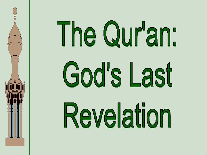 The Qur’an Z Muslims believe it contains the word of God. Z 114 suras (chapters). ZWritten in Arabic.