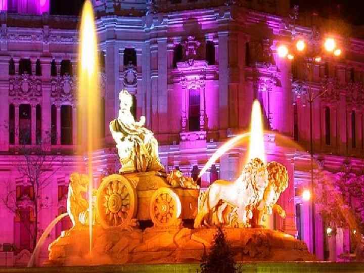 Достопримечательности Испании Мадрид – столица Испании, город, наполненный памятниками архитектуры различных эпох, музеями с бесценными коллекциями и другими достопримечательностями. У одних туристов Мадрид ассоциируются с яркими танцами и южным темпераментом, у других – с южными фруктами и знойным летом, у третьих – с испанскими грандами и королевской династией, у четвертых – с действами инквизиции. Прогуливаясь по огромному городу, можно увидеть и величественные католические храмы, и королевскую резиденцию, и странные здания, и многонаселенные кварталы, в которых сохранился традиционный быт, и респектабельные районы, в которых живут обеспеченные испанцы; множество магазинов и бутиков, шумных базаров и тихих парков, ночное освещение зданий.