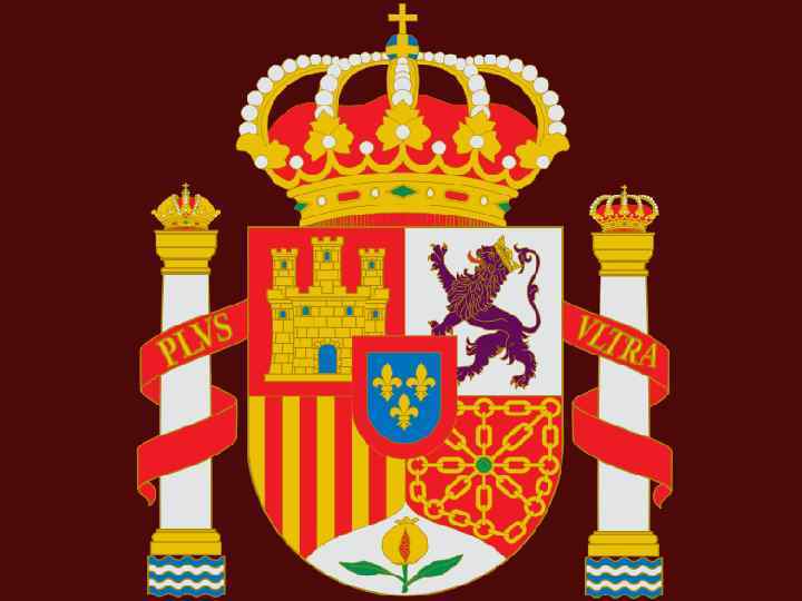 Герб Испании — сведение воедино всей её истории. На нём представлены все королевства, которые объединились в современной Испании: Кастилия представлена замком; Леон, Астурия и Галисия — львом; Арагон, Каталония и Балеарские острова — четырьмя красными полосами на золотом фоне; Наварра — в виде цепей; Андалусия изображена в виде граната, так как в Испании он произрастает в основном только на землях Гранады — последнего мусульманского государства, захваченного христианскими королями в ходе Реконкисты; в сердце герба — на щите овальной формы три золотые лилии в лазурном поле с червленой каймой представляют Анжуйскую ветвь династии Бурбонов, к которой принадлежит король и его семья, а корона, венчающая герб, — знак того, что Испания — королевство; колонны символизируют Геракловы столбы, так раньше называли Гибралтар. Интересно отметить, что всем известный знак доллара — это те самые Геракловы Столбы, обвитые лентой. Девиз «Plus Ultra» — лат. дальше предела (До открытия Америки Колумбом: Non Plus Ultra — лат. дальше некуда, потому что Геракловы столбы считались концом света).