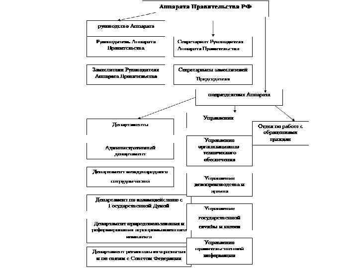 Правительство РФ Председатель Правительства РФ Первый Заместитель Председателя Заместители председателя Правительства РФ (7) Правительства РФ Федераль ные министер ства Федеральные агентства Федера льные службы Президиум Правительства