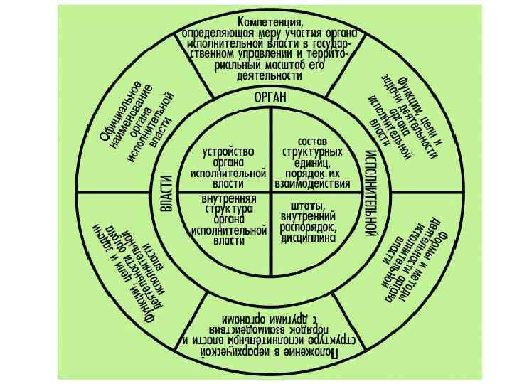 Полномочия субъектов Федерации по организации собственной системы органов исполнительной власти конкретизируются в их конституциях и уставах. Содержание этих полномочий составляют: • право разрабатывать и принимать соответствующие акты, являющиеся правовой основой системы органов исполнительной власти субъектов Федерации; • право самостоятельно избирать организационно-правовые формы органов исполнительной власти, устанавливать их структуру, распределять функции и компетенцию между различными видами органов; • право проводить мероприятия по образованию органов исполнительной власти (выборы, формирование, назначение и т. п. ); • право осуществлять политико-правовое, организационное и ресурсное обеспечение деятельности такой системы органов исполнительной власти.