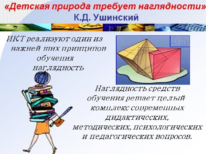 Принцип активности ребенка в процессе обучения был и остается одним из основных в дидактике. К. Д. Ушинский когда-то сказал, что знания будут тем прочнее и полнее, чем большим количеством чувств они воспринимаются. Труд на уроке с применением ИКТ - процесс осознанного усвоения материала. Как говорит пословица: «Тебе скажут - ты забудешь, тебе покажут – ты запомнишь, ты сделаешь – ты поймешь» . Применение ИКТ – реальность современного урока!