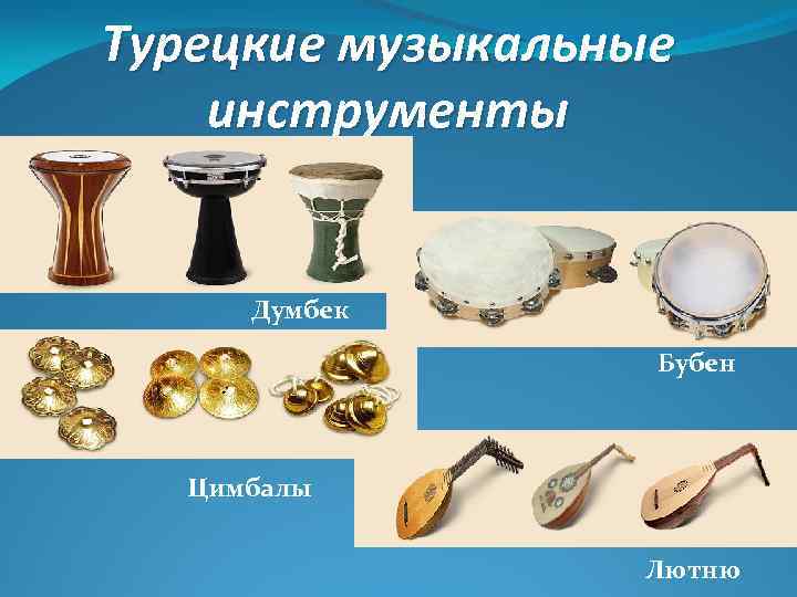 Турецкие музыкальные инструменты Думбек Бубен Цимбалы Лютню