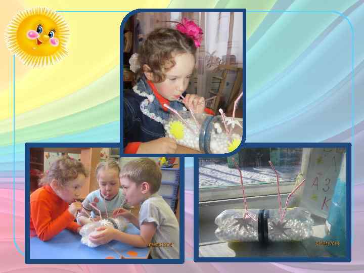 «Пособие для развития речевого дыхания из бросового материала «Волшебный звездопад» . Выполнено из двух половинок пластиковых бутылок соединённых между собой функциональной швейной застёжкоймолнией. Поверхность пособия украшена звёздами из голографической фольги. Внутри наполнитель из пенопластовых шариков маленького диаметра. Имеет четыре отверстия с трубочками для коктейля, по числу детей использующих данное пособие. Число детей в зависимости от поставленной задачи логопеда варьируется от одного до четырёх. Наполнитель и оформление пособия можно заменять в зависимости от тематики и цели логопедического занятия. Пособие может быть использовано как выносной материал на прогулку. • Цель: в зависимости от инструкций логопеда и поставленной задачи, пособие может быть применено для развития сильного непрерывного выдоха, сильного плавного выдоха, длительного непрерывного ротового выдоха, сильного плавного и продолжительного выдоха, сильного целенаправленного выдоха, развития губных мышц и т. д.