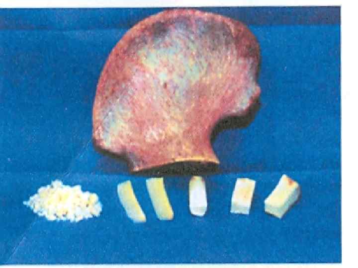 При зубной имплантации наибольшее применение находит выпускаемая банками тканей лиофизированная и деминерализированная кость в виде блоков, фрагментов кортикальных пластинок, порошка, гранул разной величины.