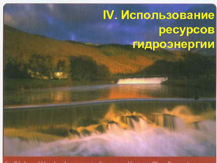 IV. Использование ресурсов гидроэнергии
