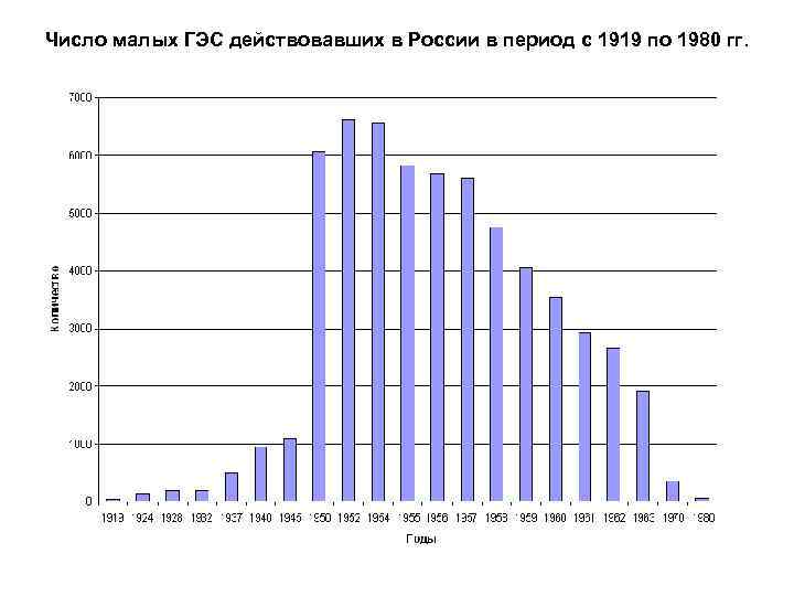 Число малых ГЭС действовавших в России в период с 1919 по 1980 гг.