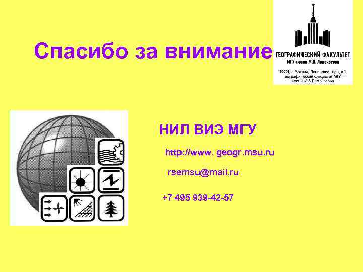 Спасибо за внимание! НИЛ ВИЭ МГУ http: //www. geogr. msu. ru rsemsu@mail. ru +7 495 939 -42 -57