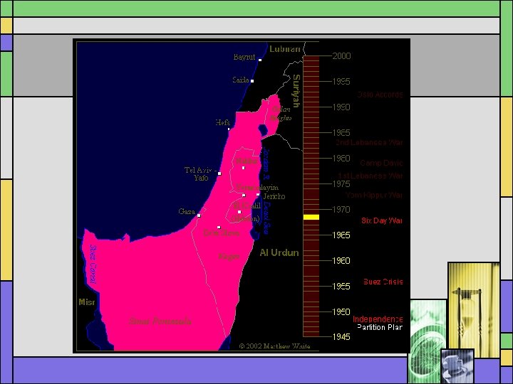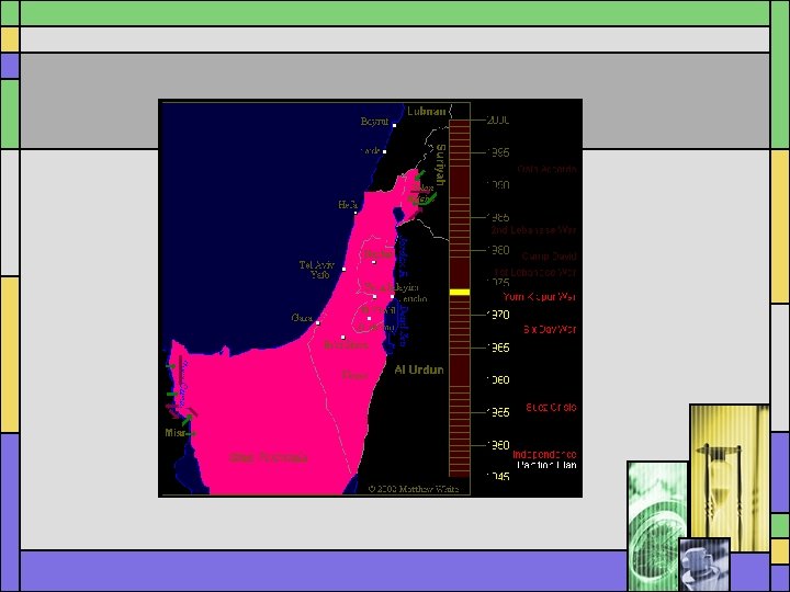 Oslo Accords 1993 • Pres. Clinton, P. M. Yitzhak Rabin and PLO leader Yassir Arafat negotiate terms for Palestinian Self Rule • Israel negotiates directly with PLO • PLO recognizes Israel’s right to exist