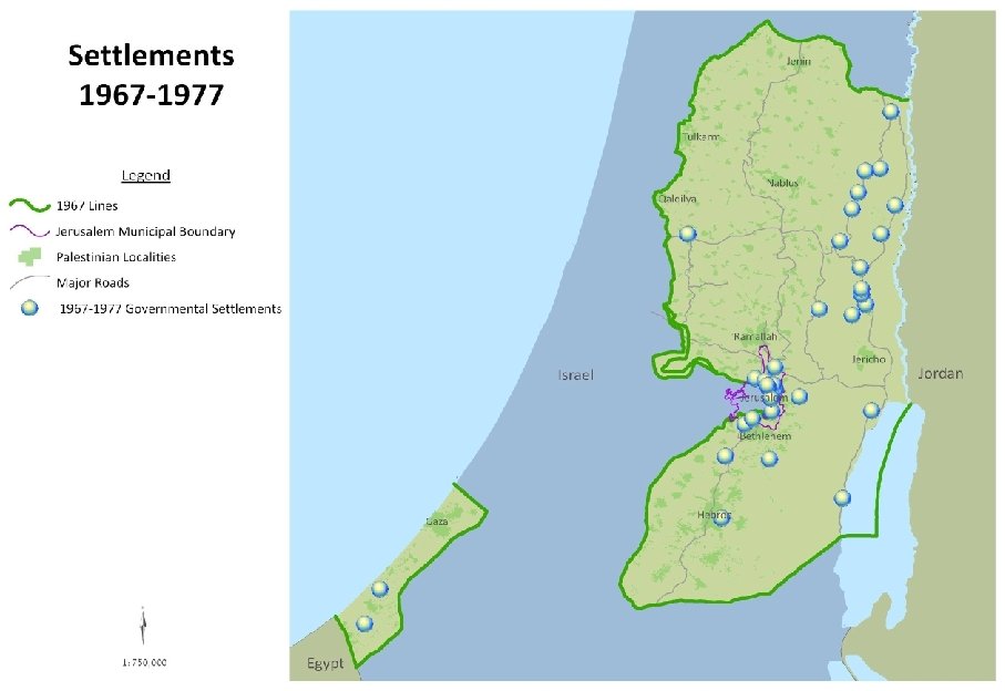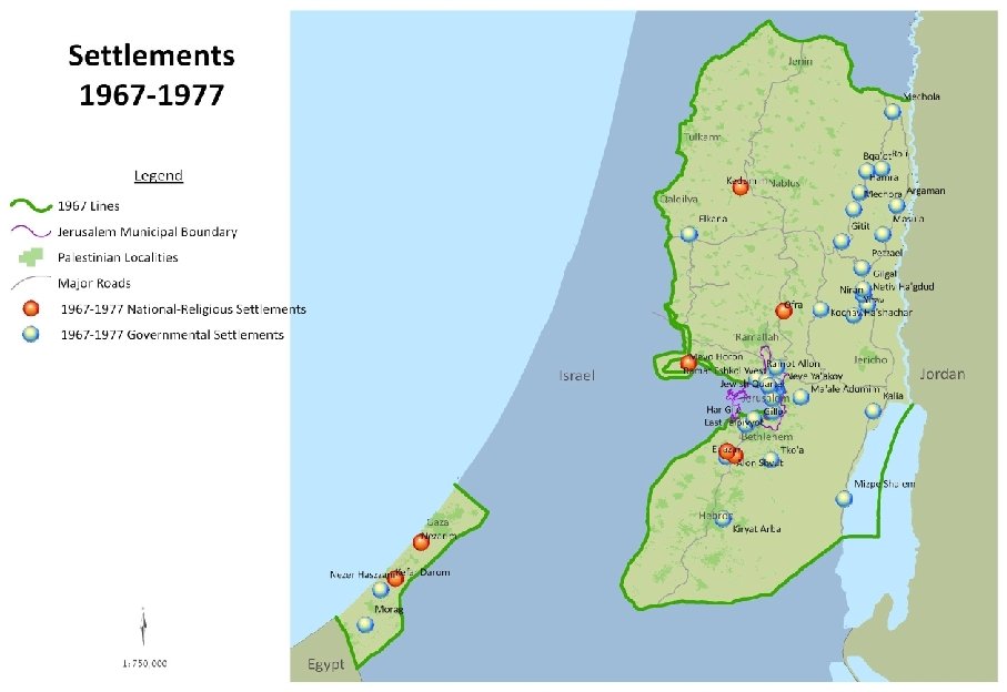 The Separation Concept 1974 -1977 • “The government has adopted a defined security policy, where one ought to settle and where not. In the Golan Heights, the Jordan Valley, the Jerusalem area, the Ezion Block, and the Rafiah area – yes. In Samaria – no! To the heart of the West Bank, which is densely populated by the Arabs, we ought not to push Jewish settlers. Such dramatic settlement holds the signs of arrogance and defiance vis-à-vis the Arabs and the United States, and is unneeded and unjust from the perspective of security. ”