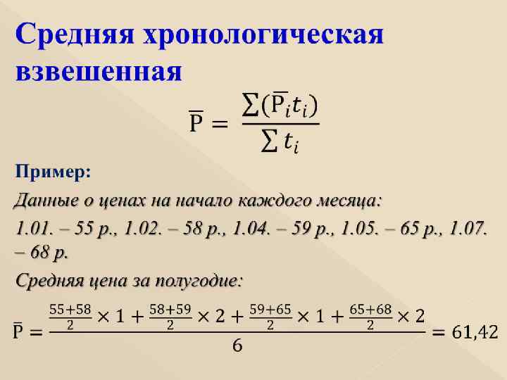 Средний уровень цен – обобщенная характеристика товарной группы, состоящей из однородных товаров, рассчитанная на основании индивидуальных цен за определенный период времени