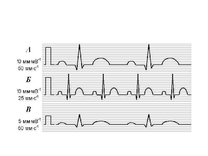 ИЗМЕНЕНИЯ ЭКГ ПРИ ПЕРЕМЕНЕ ПОЛОЖЕНИЯ ТЕЛА • А — лежа на спине; Б — на правом боку; В — на левом боку; Г — сидя.