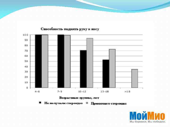 Flanigan и соавторы. 2012 Лица, гомозиготных по A аллелю XXXXX гена имели на 50% снижение потери способности к передвижению, по сравнению с гетерозиготами или гомозиготами по B аллелю. Пациенты , получавшие глюкокортикостероиды, гомозиготные по А аллелю, теряли способность ходить в 12. 5 ± 3. 2 лет, в сравнении с пациентами гомозиготными или гетерозиготными по В аллелю, которые теряли способность ходить в 10. 5 ± 2. 2 лет.