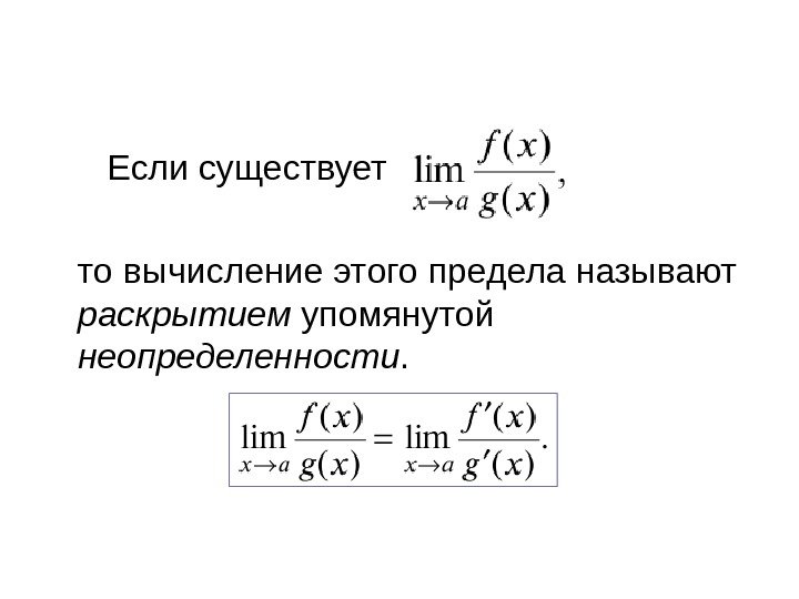 Если существует то вычисление этого предела называют раскрытием упомянутой неопределенности.