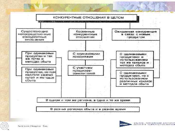 Основой конкуренции могут быть: 1. 2. 3. 4. У больших фирм – рыночная сила (доля рынка); У небольших фирм – гибкость и рыночная адаптивность; У узкоспециализированных фирм – высокая приспособленность к потребностям клиента и «нишам рынка» У фирм-новаторов – преимущества инноваций и первооткрывателей