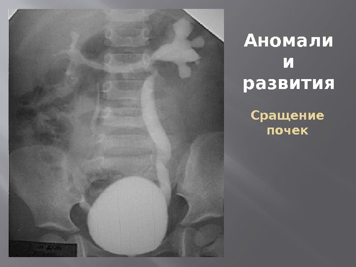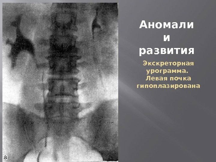 Экскреторная урограмма. Левая почка гипоплазирована Аномали и развития