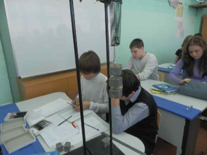 Таблицы результатов эксперимента 1 № эксперимента Масса груза, кг 1 2 3 0, 1 0, 2 0, 3 Сила упругости Fупр = Fт = mg, Н 1 2 3 № Масса груза, кг эксперимента 1 2 3 0, 1 0, 2 0, 3 Сила упругости Fупр = Fт = mg, Н 1 2 3 Удлинение пружины ∆l, м 0, 235 0, 46 0, 57 Коэффициент пропорциональ ности Fупр /∆l, Н/м 4, 3 4, 4 5, 3 4, 6 Удлинение Коэффициент пружины ∆l, м пропорциональ ности Fупр /∆l, Н/м 0, 16 6, 25 0, 24 8, 3 0, 33 9, 9 8, 15