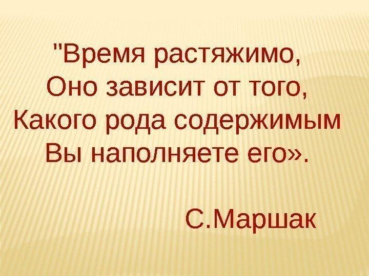 «Время растяжимо, Оно зависит от того, Какого рода содержимым Вы наполняете его» . С. Маршак