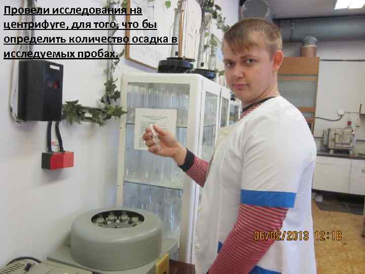 Провели исследования на центрифуге, для того, что бы определить количество осадка в исследуемых пробах.