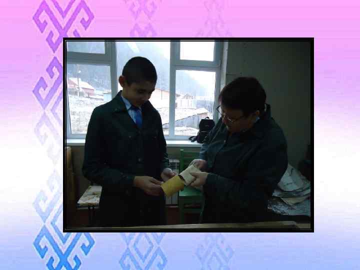 № п/п 1 2 Этапы работы Графическое изображение Инструменты и приспособление Подготовка материалов, очистка Береста, ножрезак, наждачная бумага Заготовка чистый пласт бересты по размеру туеска 2 шт. Береста, линейка, карандаш, ножницы 1 слой – рубашка (наружная сторона туеска) 26 х1 2 слой – сколотень (внутренняя сторона туеска на 1 см меньше по ширине и по высоте)25 х9 см 3 Берестяной пласт по длине подбирают таким образом, чтобы вертикальные края заходили друг за друга на 10 -15 мм. Шилом намечают по две точки на каждом краю и соединяют точки прямой линией и наклеивают друг с другом плотно. Шило, линейка, клей «Момент»