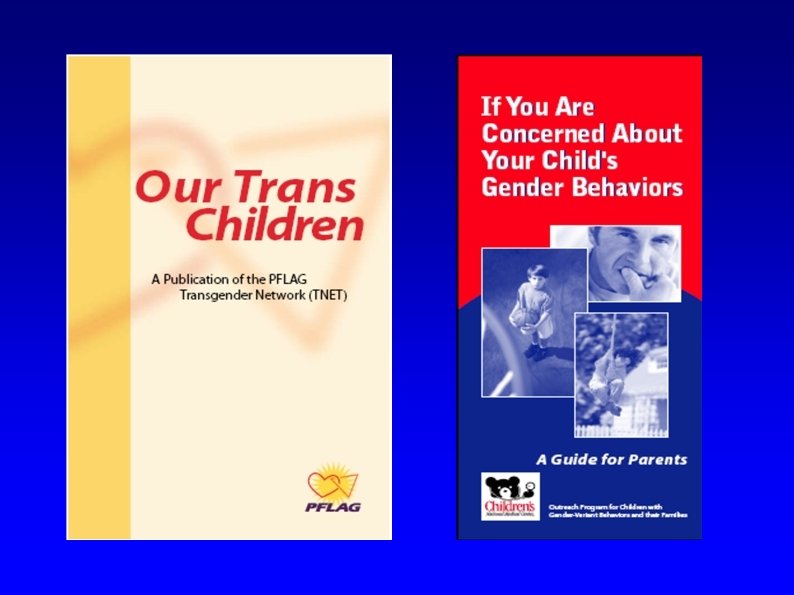 Follow up management § Provide referrals to local peer support groups (mentoring) § Provide referrals to family support groups: Trans Youth Family Allies, PFLAG transgender network Gender Spectrum Family