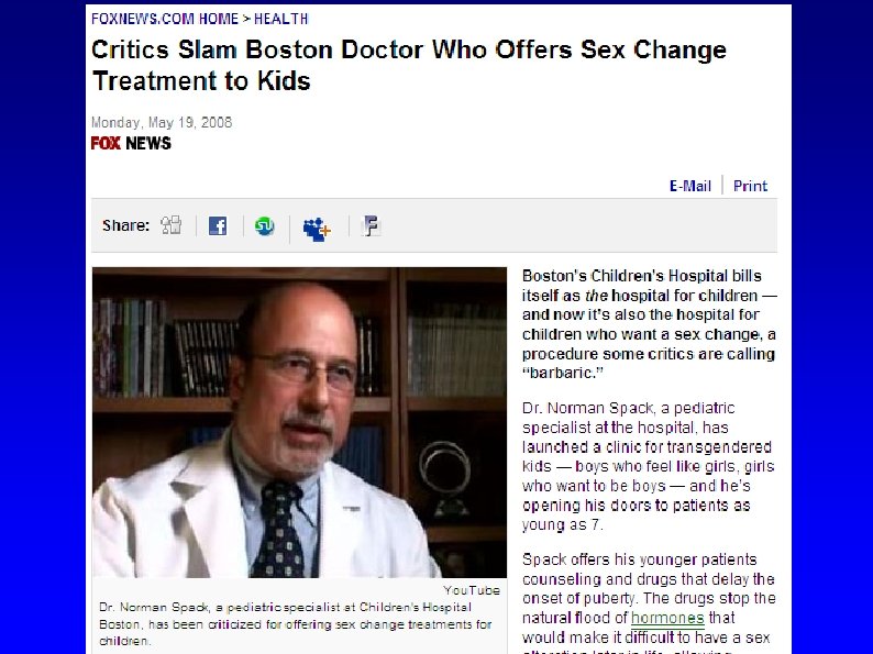 Query posted on online pediatric discussion group § “I have seen an increasing number of youths referred by mental health professionals for initiation and medical supervision of cross gender hormone treatment. I wonder if others have had similar experiences. ” -cfm