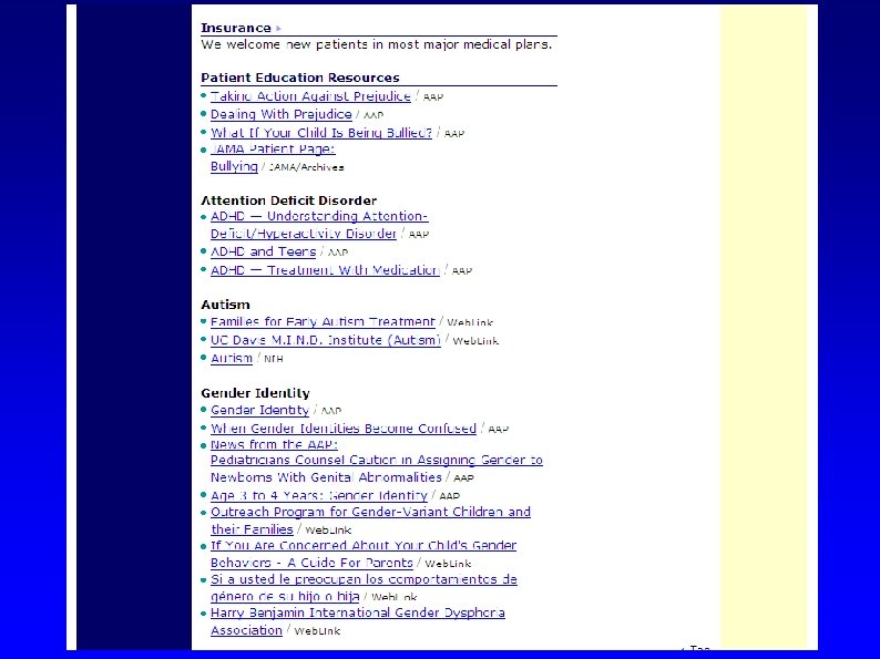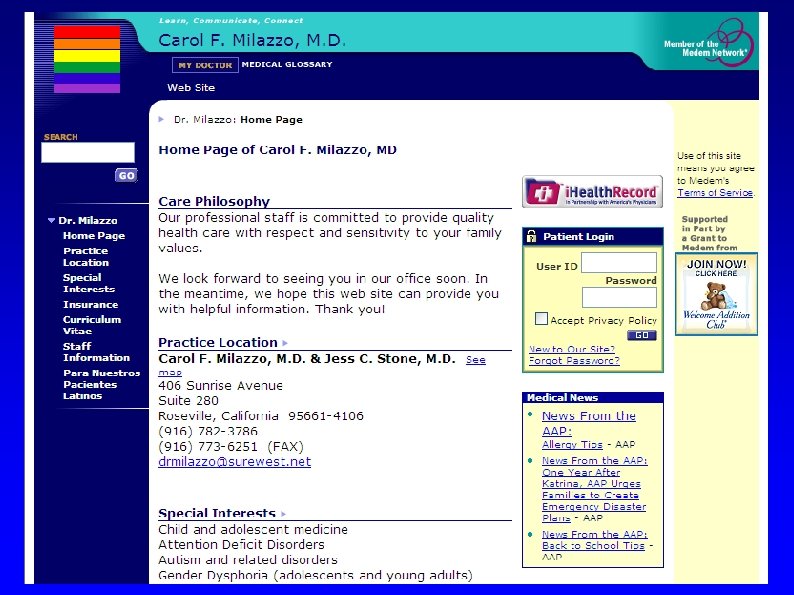 Practice website § Provides descriptive and useful information on health management, introduction to staff, practice flavor and policies. www. cfmilazzo. com