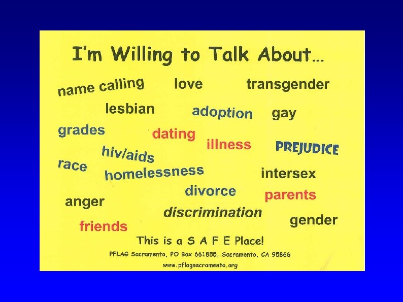 Patient comfort § Have a gender-neutral restroom § “This is a SAFE Place” posters – GLSEN, PFLAG