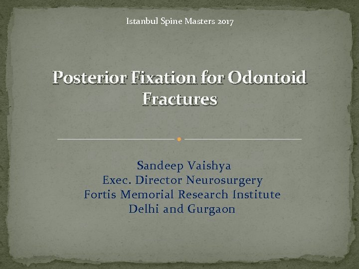 Istanbul Spine Masters 2017 Posterior Fixation for Odontoid Fractures Sandeep Vaishya Exec. Director Neurosurgery Fortis Memorial Research Institute Delhi and Gurgaon
