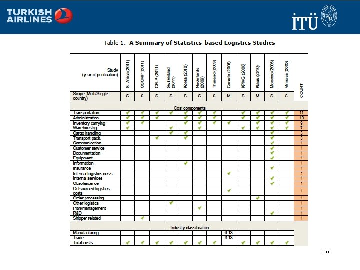 CARE IN COMPARING LOGISTICS COSTS 9
