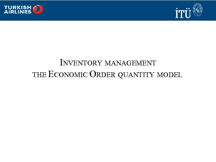 INVENTORY MANAGEMENT THE ECONOMIC ORDER QUANTITY MODEL