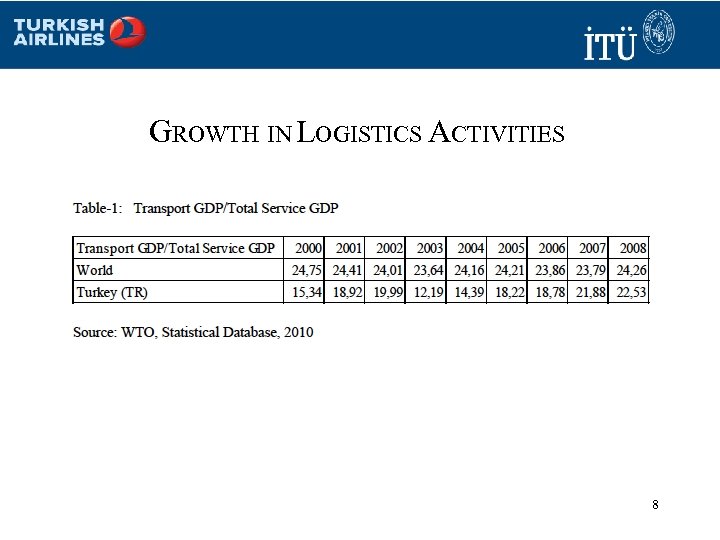 GROWTH IN LOGISTICS ACTIVITIES 8