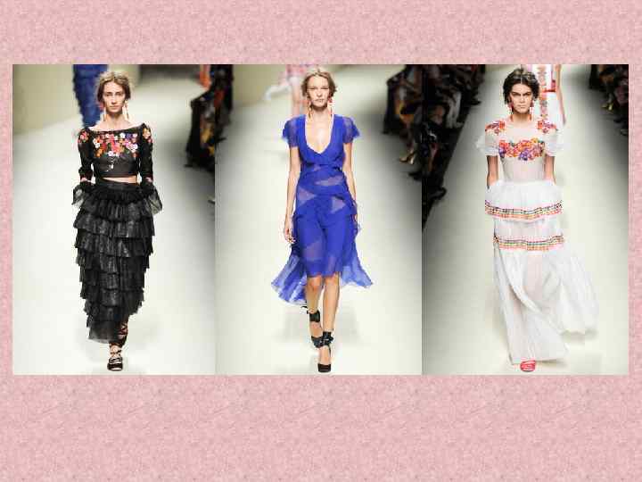 Испанские и итальянские мотивы в коллекции Alberta Ferretti Весна 2014 • Дизайнер использовала испанский/итальянский национальный фольклор при создании всех нарядов новой коллекции. Альберта Ферретти выбирает в качестве главной темы сезона фольклор с его яркими красками, цветочными узорами и рукодельными элементами декора.