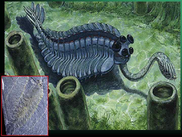 Трилобиты – около 60 % всех известных остатков кембрийской фауны - имели хитиновофосфатный панцирь; - слабо развитый хвостовой щит; - не обладали способностью свертываться.