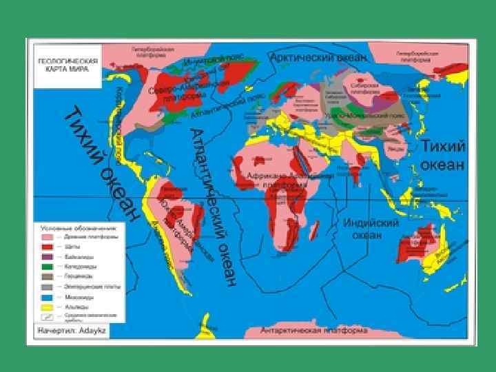 Платформы Восточно-Европейская, Сибирская, Китайская, Северо-Американская. К началу кембрия формируется гигантская суперплатформа – Гондвана = Южно. Американская платформа + Африкано. Аравийская + Индийская + Австралийская + Антарктическая.