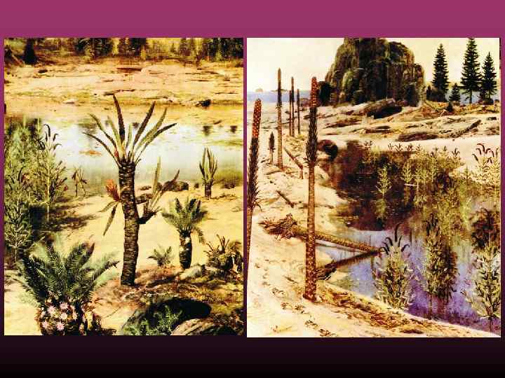 На платформах накапливались преимущественно континентальные красноцветные терригенные отложения. Растительные остатки в них встречаются крайне редко.