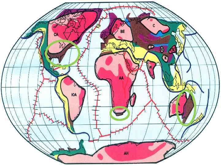 Пангею окружал океан Панталасса, по окраинам которого располагались Западно- и Восточно. Тихоокеанские подвижные пояса (зоны субдукции).