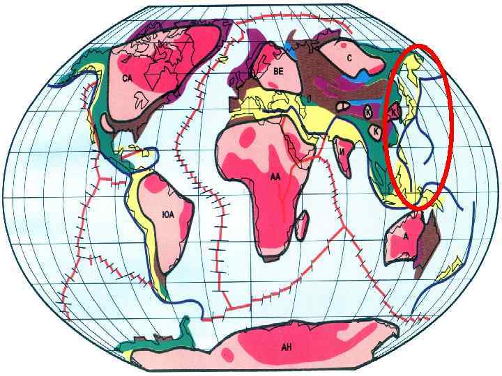 В Западно-Тихоокеанском поясе образовались складчатые структуры Корякского нагорья, Камчатки, Сахалина, Курильских островов, Японии, Филиппин, востока Индонезии.