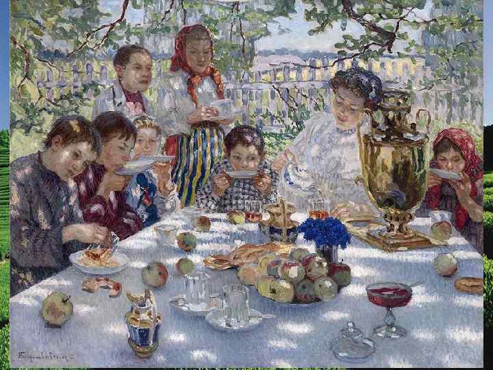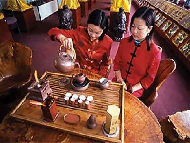ИСТОРИЧЕСКАЯ СПРАВКА В России чайная традиция обогатилась самоваром, лимоном, блюдцами и чаем вприкуску. При этом питье чая из блюдца стало прямым следствием использования самоваров, в которых вода долго не остывала. Пить чай вприкуску начали в небогатых русских семьях – это было экономнее, чем класть сахар в чашку. А вот с лимоном дело не совсем ясно – во всем мире чай с лимоном называют «русским» . Истоки этой традиции могут лежать вот где. На многочисленных почтовых станциях путешественникам предлагали чаю (есть они могли редко – в тогдашних каретах здорово трясло) и лимончику (для тех, кто побогаче). Возможно, что на этих самых станциях чай с лимоном и сошлись как-то раз в одной чашке. Англии мы обязаны тем, что в европейских чайных традициях черный чай получил большее распространение, чем зеленый. Англичане первыми начали смешивать между собой разные сорта чая, получив в результате этого знаменитые купажи. В Ирландии зародилась традиция спрыскивать сухую чайную заварку виски – именно так появился сорт Ирландский завтрак. Значительная часть известных нам сейчас чайных закусок также родом из Англии, как и традиция, пить чай с молоком. Средняя Азия подарила нам традицию пить чай как средство от жары. Непременно зеленый и непременно из пиал. В США стали охлаждать заваренный чай и смешивать его с дополнительными вкусовыми добавками, льдом и иногда газировать – так получился тот самый Айс Ти. . Во время японской чайной церемонии порошковый зеленый чай взбивается. Кроме этого, один из традиционных сортов японского зеленого чая – Генмайча – хоть и заваривается горячей водой, но содержит рис и некоторые другие добавки. А в Бурятии, Монголии и на Тибете продолжают варить чайные супы.