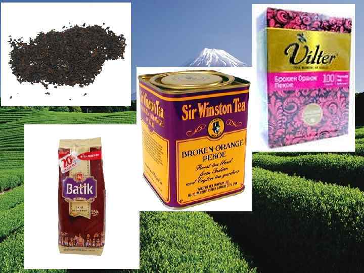 КЛАССИФИКАЦИЯ И ХАРАКТЕРИСТИКА АССОРТИМЕНТА Японский чай q Сен-ча ( «ча» — чай по-японски): Самый типичный вид японского зеленого чая, покрывающий 85% всего объема. Сен-ча не должен содержать ни одного стебля. q Бан-ча: приготовлен по тому же рецепту, как и сен-ча, но из стеблей. Вкус и ча аромат просты и незатейливы. q Хожи-ча: изжаренный до коричневого цвета сен-ча или бан-ча. Сильный, очень ча располагающий аромат. q Генмай-ча: смесь хожи-ча или сен-ча с рисинками, приготовленными под высоким ча давлением, и другими ароматными крупами. Своеобразный привкус жареных круп освежает представление о чае. q Гекуро: самый дорогой и высококачественный чай. Выращивается под специальными решетками, исключая прямое попадание солнца. Встречается чай ручной работы, что обозначает «человеческими руками мят» . q Мат-ча: изготовлен, как гекуро, в полутени, но без переминания и перетирается в ча порошок. Чай для чайной церемонии. Способ применения весьма прост. Залил чайную ложку кипятком, перемешал и выпил, какао.
