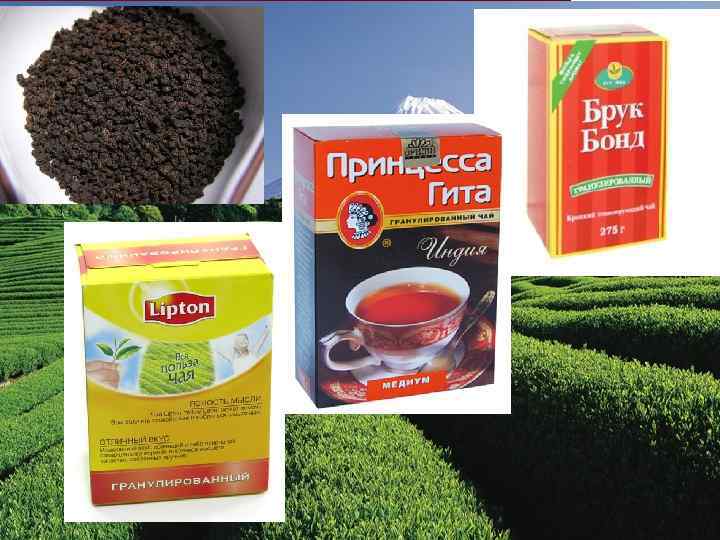 КЛАССИФИКАЦИЯ И ХАРАКТЕРИСТИКА АССОРТИМЕНТА В зависимости от исходного сырья и технологии переработки: байховый (рассыпной): крупный (листовой), мелкий и гранулированный (скрученный в шарик, горошек, гранулу — по технологии CTC или др. ) прессованный: кирпичный, плиточный, таблетированный, полученный из отходов (крошки и высевок) путем прессования экстрагированный (быстрорастворимый) — сухие или концентрированные экстракты черного или зеленого чая ароматизированный (пушонги) — байховый чай с добавлением натуральных или искусственных ароматизаторов разового использования (в пакетиках) – по 2 -3 г из неразмокающей бумаги связанный – получают из свежих тонких и длинных флешей, а также цветков жасмина, лилии, календулы и других при помощи ниток