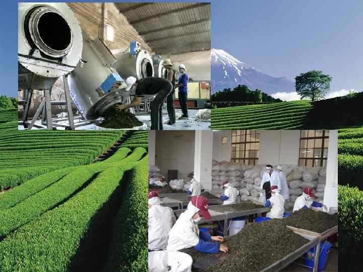 ФАКТОРЫ, ФОРМИРУЮЩИЕ КАЧЕСТВО СЫРЬЕ Сырьем для производства чая служат листья многолетнего тропического вечно-зеленого растения Thea, произрастающего в виде дерева в районах с влажным тропическим и субтропическим климатом на чайных плантациях путем систематической обрезки побегов дереву придают форму сильноветвистого куста высотой до 1 м. Известны 2 вида чайного растения – китайский Thea sinenis и ассамский Thea assamica. Каждый вид имеет несколько разновидностей, отличающихся размером, формой, строением листьев. Обычно листья имеют удлиненную или овальную форму с зубчатыми краями и гладкую поверхность. Качество чая зависит от следующих факторов: От высоты плантации над уровнем моря (чем выше, тем лучше) От района произрастания От времени сбора (однолистные, двухлистные и трехлистные побеги – флеши, собирают с чайного куста в период с апреля по октябрь, а грубый чайный лист, собирают осенью после сбора сортового чайного листа и весной до подрезки чайных кустов для производства зеленого кирпичного чая, лао-ча)