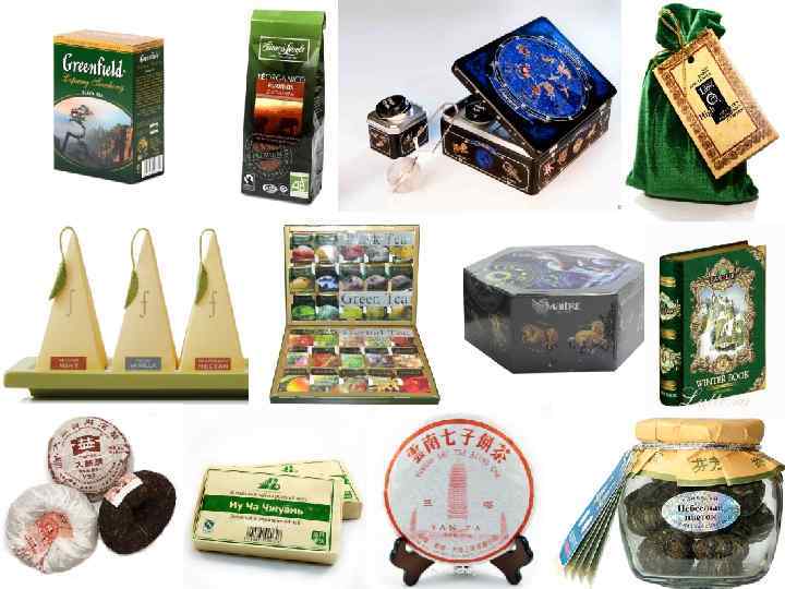 КЛАССИФИКАЦИЯ И ХАРАКТЕРИСТИКА АССОРТИМЕНТА q Черный чай (англ. black, кит. хун ча) — сильно окисленный (наименование «чёрный» — европейское, применяется также в Америке, Индии и Шри-Ланке. В Китае и других странах Юго-Восточной Азии такой чай называется «красным» ). Листья проходят длительное окисление, от двух недель до месяца (существуют укороченные процессы, когда чай окисляется в процессе других технологических операций, но они дают продукт худшего качества из-за сложностей контроля над процессом). В сухом виде имеет тёмно-коричневый или почти чёрный цвет. Настой — от оранжевого до тёмно-красного. В аромате могут выделяться цветочные или медовые нотки, вкус характерный, терпкий, не горчит. q Пуэр (кит. хэй ча, «тёмный чай» ). Изготавливается как из почек, так и из зрелых листьев, со старых деревьев. По способу приготовления делится на Шу Пуэр (искусственно состаренный, приготовленный) и Шэн Пуэр (сырой, зелёный). Первоначально доводится до состояния зеленого чая, после чего проходит ферментацию. Естественное старение проводится в течение нескольких лет без дополнительной обработки (иногда называется «вылёживанием» ), искусственное — методом ускорения ферментации в условиях повышенной температуры и влажности. В отличие от других типов чаёв, пуэр не только окисляется, но и ферментируется в точном смысле этого слова. Степень окисления шу пуэров постоянна, она определяется сортом и технологией. Окисление шэн пуэров меняется с возрастом.