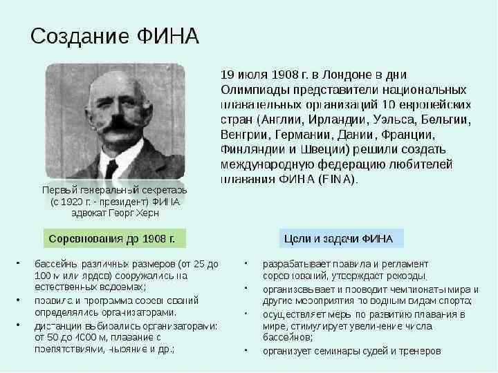 • Первая в мире спортивная организация пловцов была создана в Англии в 1869 г. , она называлась «Ассоциация любителей спортивного плавания Англия» .
