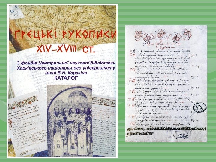 Унікальні видання, яким не має аналогів в Україні. . . 24 (!) Грецькі рукописи ХІІ – ХІХ ст. – Співробітництво з Фондом А. Левентіса (Кіпр) • Рукопис на пальмовому листі (камбоджійське письмо) • Китайська колекція “ Китай –далекий і таємничий”