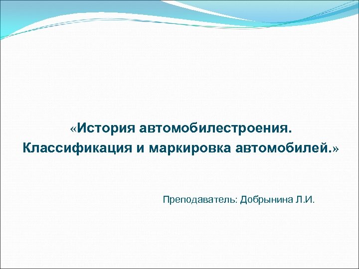 «История автомобилестроения. Классификация и маркировка автомобилей. » Преподаватель: Добрынина Л. И.