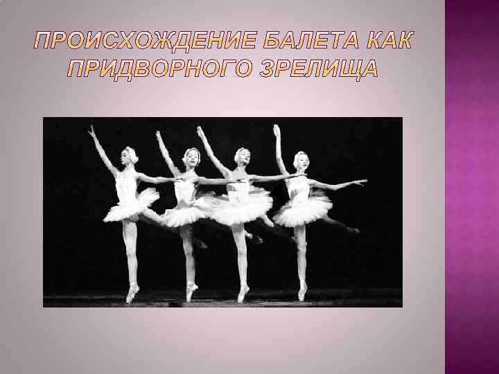 В конце эпохи Средневековья итальянские князья уделяли большое внимание пышным дворцовым празднествам. Важное место в них занимал танец, что породило потребность в профессиональных танцмейстерах. В середине 17 в. наметился отход от строгих форм, присущих придворному балету. Балетные артисты выступали теперь на сцене, приподнятой над уровнем зала и отделенной от зрителей, как это было, например, в театре, построенном кардиналом Ришелье в начале 17 в. Этот театр в итальянском стиле находился в его дворце и имел просцениум, что открывало дополнительные возможности для создания сценической иллюзии и зрелищных эффектов. Так вырабатывалась чисто театральная форма танца. В царствование Людовика XIV спектакли придворного балета достигали особого великолепия как в Париже, так и в Версальском дворце. «Король-солнце» появился, в частности, в роли Солнца в Балете ночи (1653).