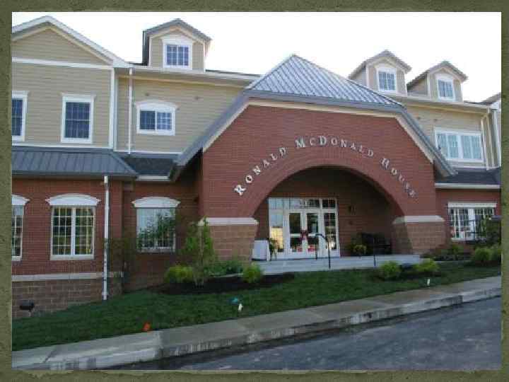 История создания фонда: Благотворительностью Корпорация Mc. Donald's начала заниматься в 1974 году, когда первый благотворительный фонд Рональда Макдональда был открыт в Филадельфии. Изначально это был дом Фреда Хилла, члена Филадельфийской Орлиной команды Американского футбола. Дом является временным пристанищем для родителей, чьи дети тяжелобольны и находятся на лечении в ближайших больницах, но в связи с дальним местом проживания родители не могут постоянно приезжать навещать своих детей, вот здесь и приходят на помощь дома Рональда Макдональда.